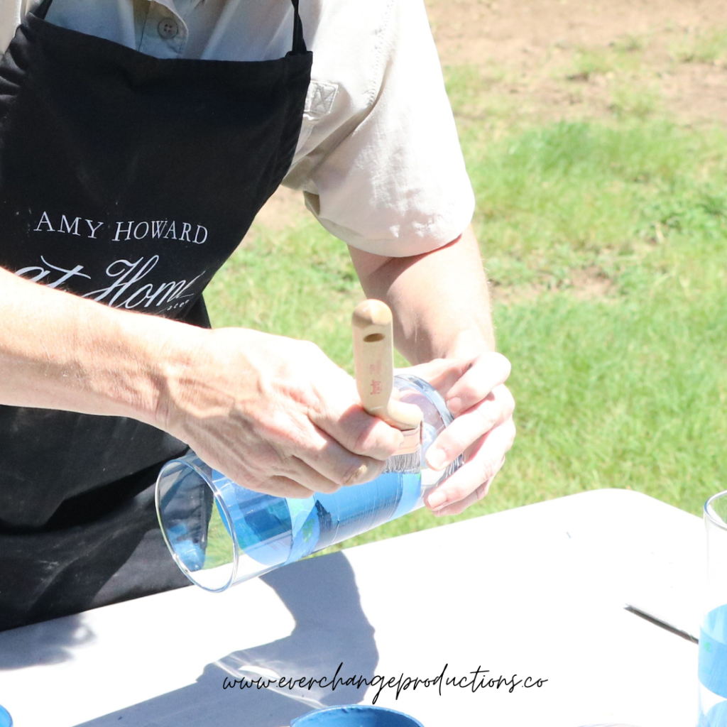 Using Amy Howard One-Step Paint, you can add color to your piece. We’ve found that if you paint down from the tape line, as opposed to up, you’ll get that clean line.