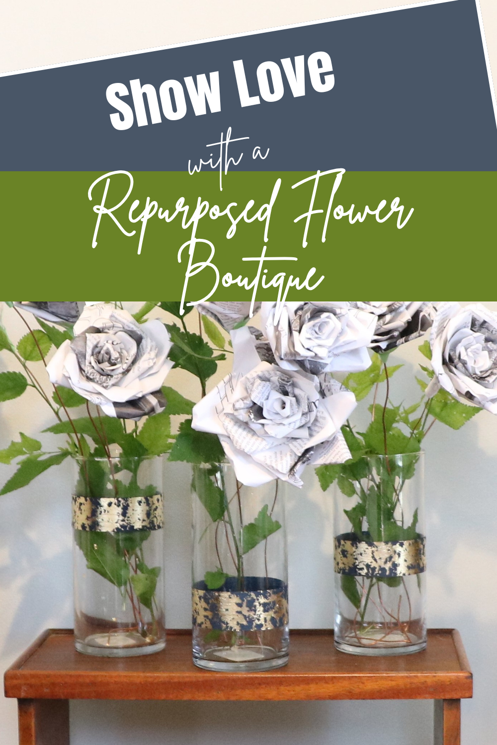 And there you have it. These repurposed flowers and vase will show you love all year long!